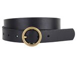 - Brass Toned Circle Buckle Leather Belt Black Small