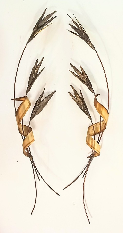 - Brass Wheat Stalk Wall Hanging Set Hollywood Regency MCM, Large 31" Long, OBO