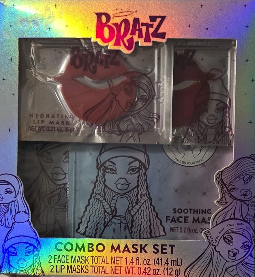 - Bratz 4pc Mask Set 2 Lip Mask Firming and Hydrating 2 Soothing Printed Face Mask