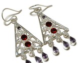 - Brazilian Amethyst, Garnet Gemstone 925 Silver Overlay Handmade Dangle Earrings