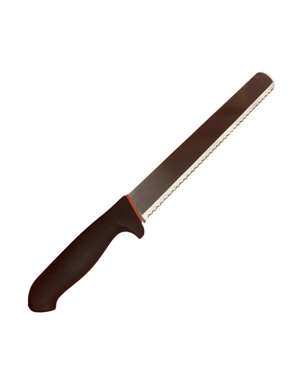 Fat Daddio’s Bread and Cake Knives effortlessly handle all your kitchen needs, from robust bread to delicate cakes. Glide through cake layers and bread with ease, ensuring clean cuts without crushing. The extended length and extra-sharp serrated edge make it perfect for torting cakes or various kitchen tasks. The plastic handle provides exceptional control, supporting the long blade length. Safe for use with breads, pastries, savory foods, and more. Dishwasher safe for added convenience.