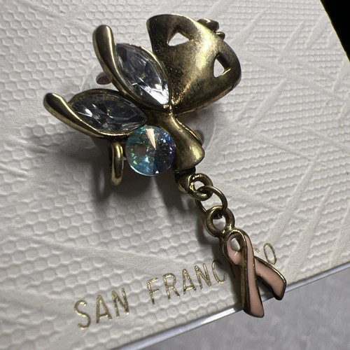 This beautiful breast cancer angel pin, crafted by Stardust, features a pink ribbon symbolizing hope and support for those affected by breast cancer. The pin is made of a high-quality, gold-tone metal and is a great accessory to show your support for breast cancer awareness.