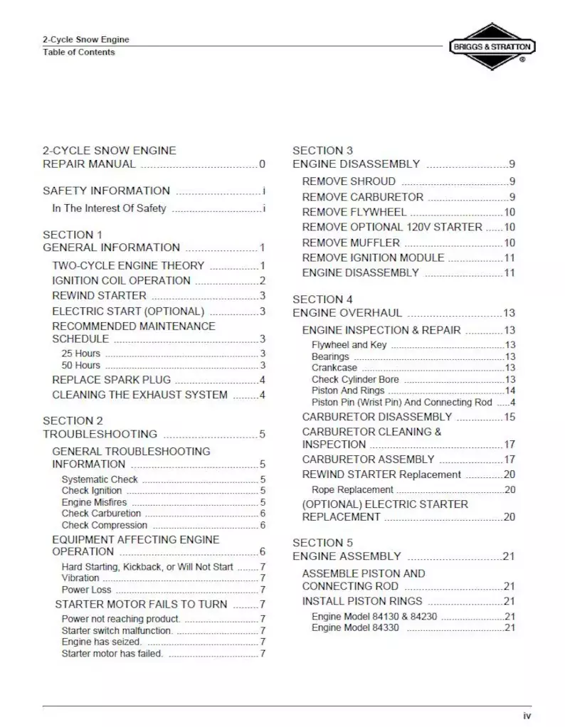 Briggs & Stratton 2-Cycle Snow Engines Service Repair Workshop Manual 276535