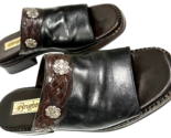 - Brighton Winter Black/Brown Leather Slip-on Mule Clogs Floral Accents women's 7M