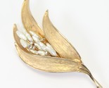 Brooch Gold Tone Leaf Faux Baroque Pearls Crystal Rhinestones Estate 3-1/2" L