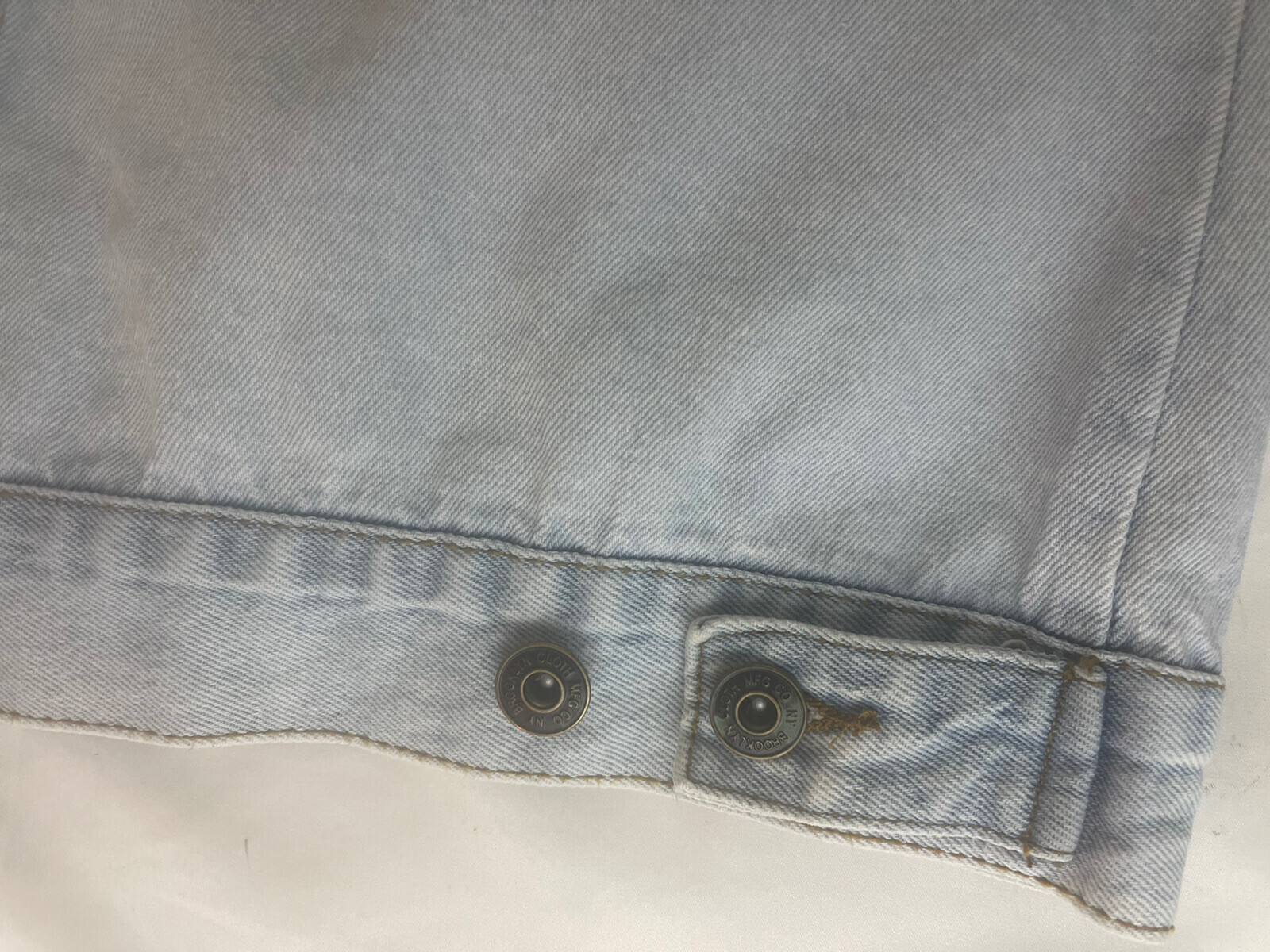 - Brooklyn Cloth Denim Small Mens Blue Jean Trucker Jacket Distressed Light Wash