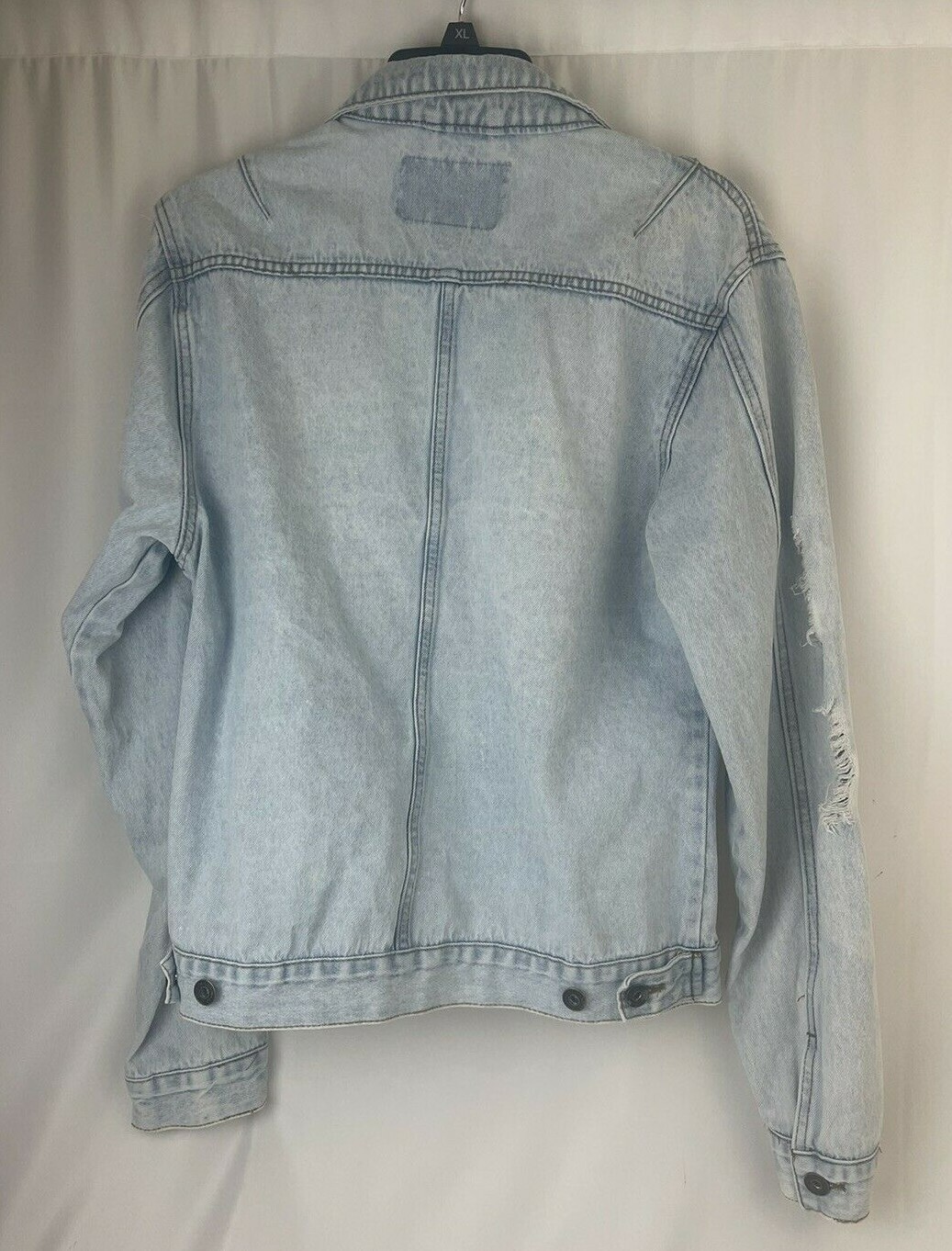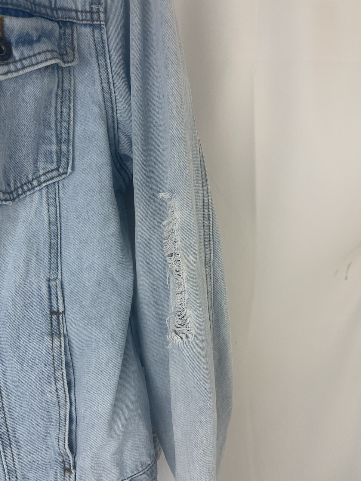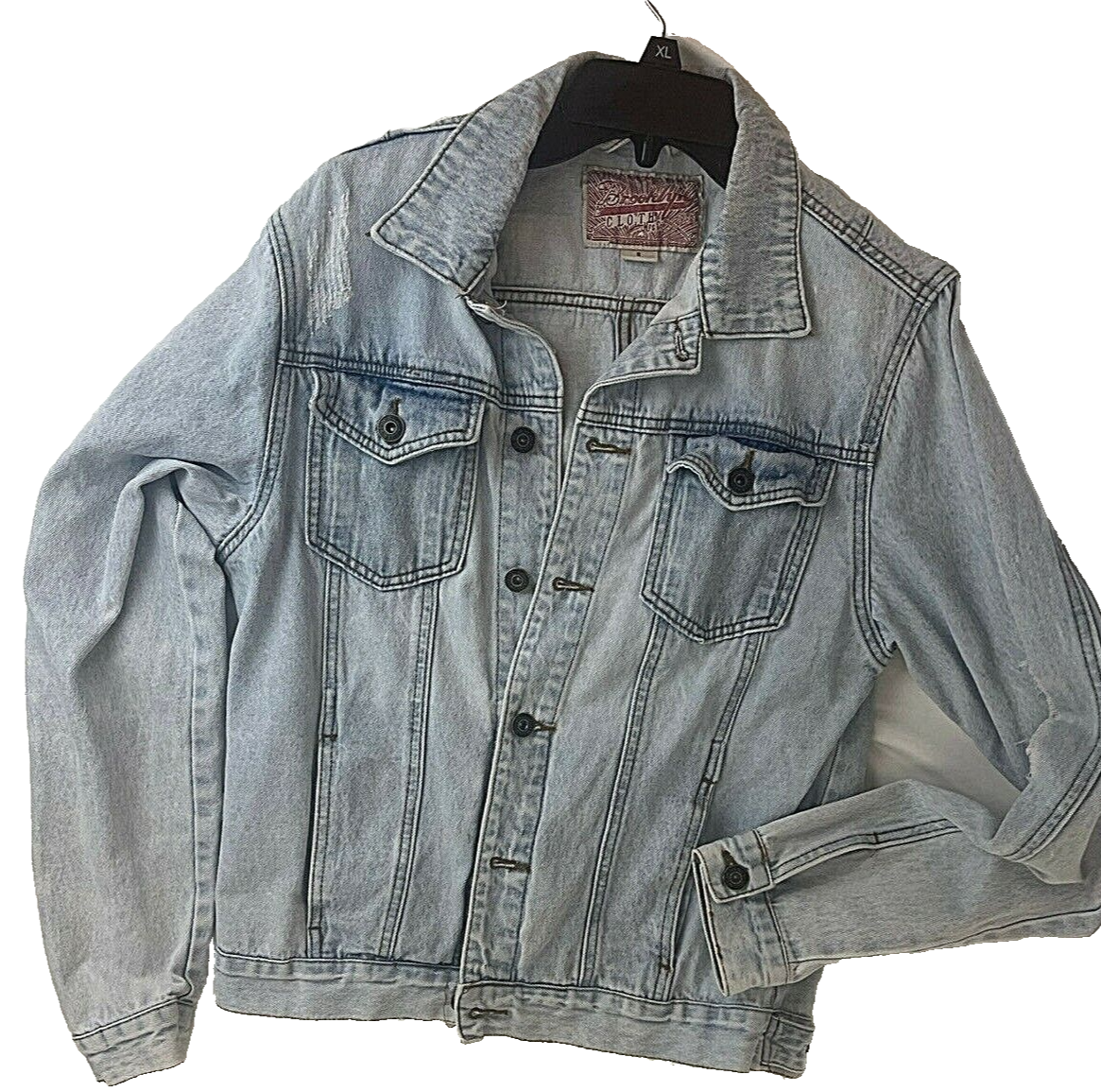 Brooklyn Cloth Jean Jacket Men Size S Blue Distressed Destroyed Light Wash Denim