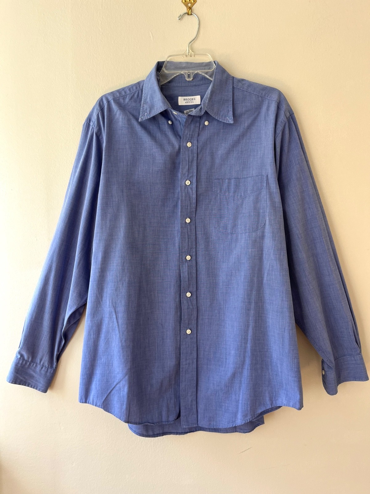 - Brooks Brothers Basics Sz 16.5 - 35 Blue Button Down Dress Shirt Chest Pocket