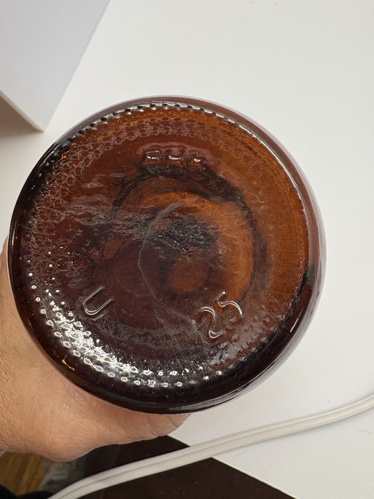 This vintage 12 oz. Brown Beer bottle features a unique embossed design, perfect for collectors of modern soda bottles. Made in the United States, this brown bottle offers a classic and timeless aesthetic that can add character to any collection. With its distinctive features and unique color, this bottle is sure to stand out as a rare find for enthusiasts of vintage collectibles.