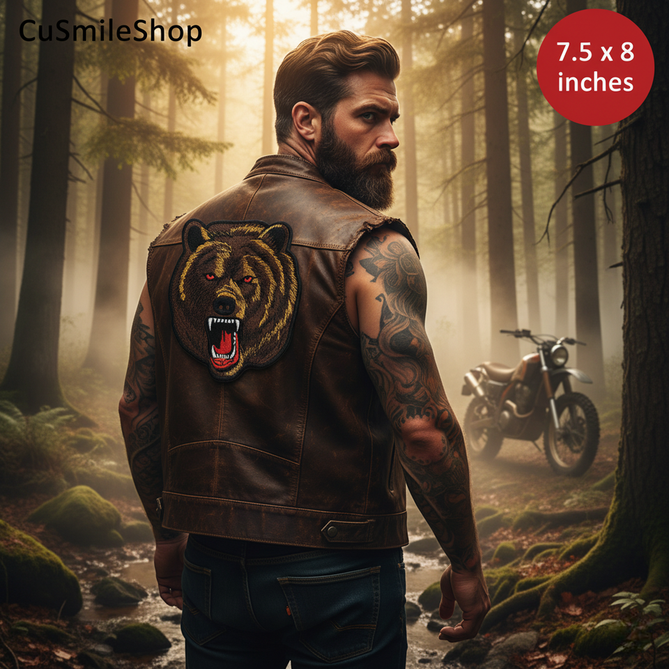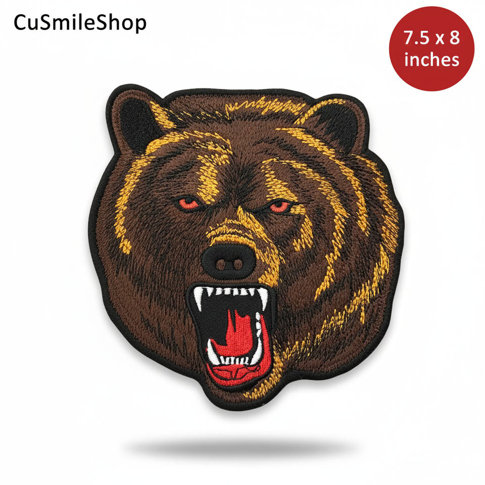 - Brown Grizzly Bear Head Forest Large Face 8 Inch Embroidery Patch Animal Logo