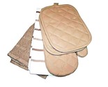 - Brown Tan White Kitchen Towels Oven Mitt Potholders Cotton Solid Stripe 5pc Gift