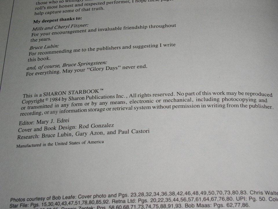 This is a vintage softbound book entitled, "Bruce Sprinsteeen, The Boss" by Elianne Halbersberg. Dated 1984 Sharon Starbook. A terrific item for the fan or collector.