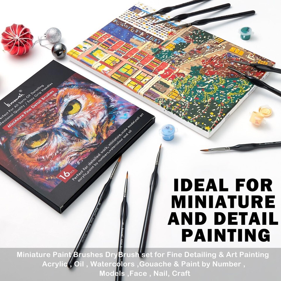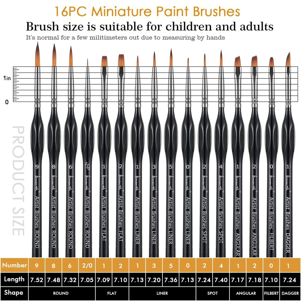 - Brusarth 16pcs Mini Detail Paint Brushes Set for Acrylics Oils Watercolors