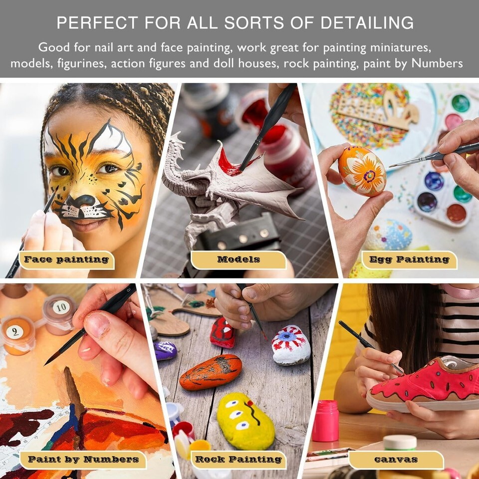 Perfect for all sorts of detailing: Good for face painting and nail art , work great for painting miniatures, figurines, models, action figures and doll houses, rock painting, paint by Numbers, Army paint.