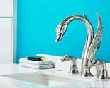 - Brushed nickel widespread 3 Pcs Swan Bathroom basin sink Faucet tap Deck Mounted