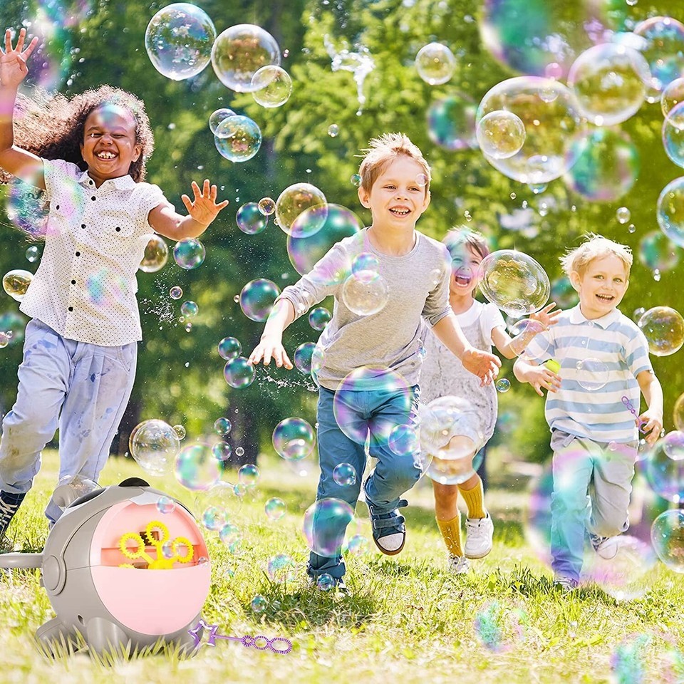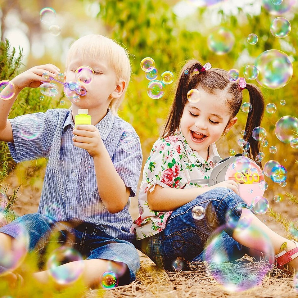 Every parent is value quality above all else. Our bubble toy is made with top-quality durable and nontoxic ABS plastic, which is super safe for kids 2-5 to play. bubble machine for toddlers have excellent toughness and rust resistance. The hand-held size is 6.1* 5.7 inch which is very convenient for kids to carry around and enjoy chasing bubbles. So convenient for outdoor parties, travel, hiking, birthday, baby baths, park and weddings.