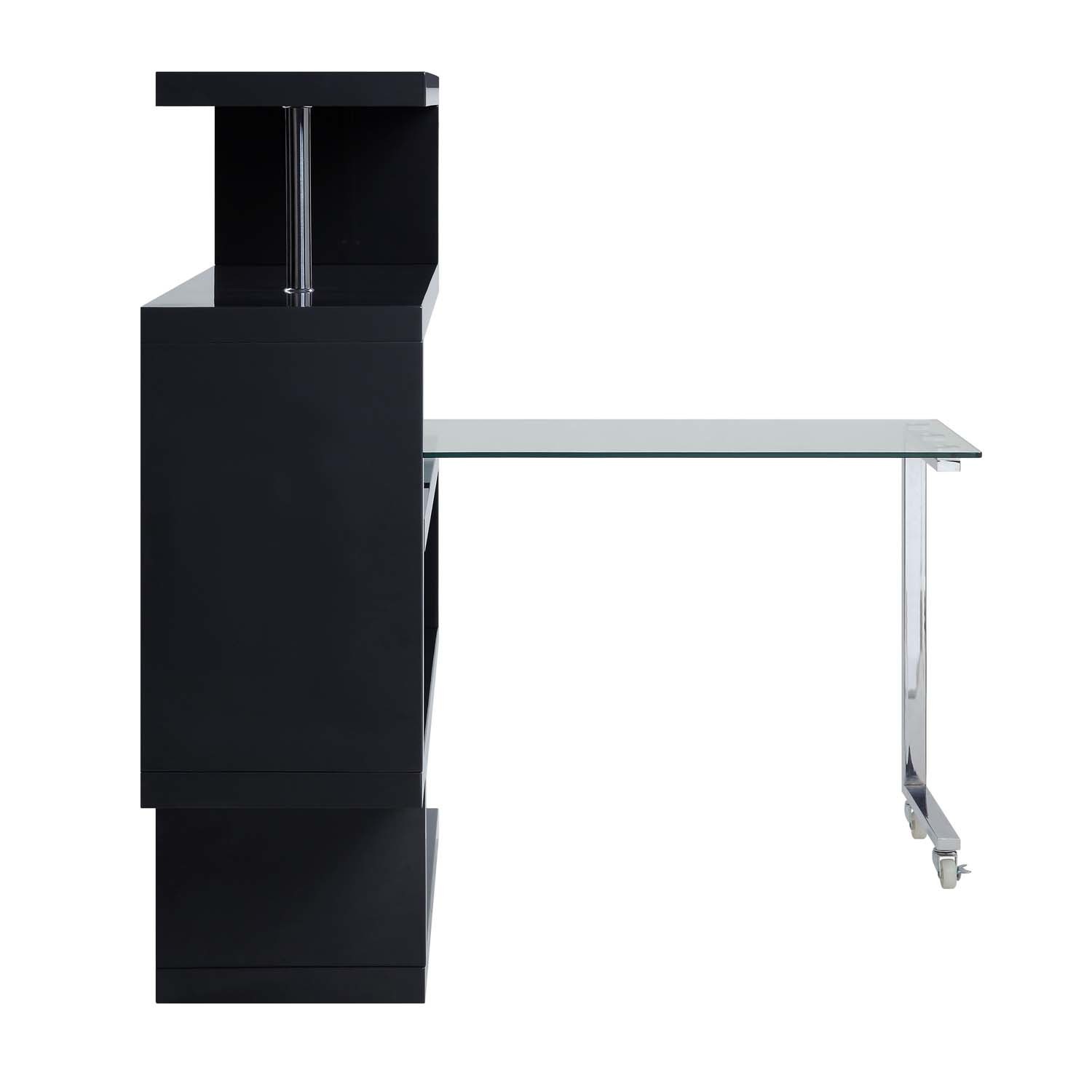 - Buck II Writing Desk w/Bookshelf, Clear Glass, Chrome & Black Finish