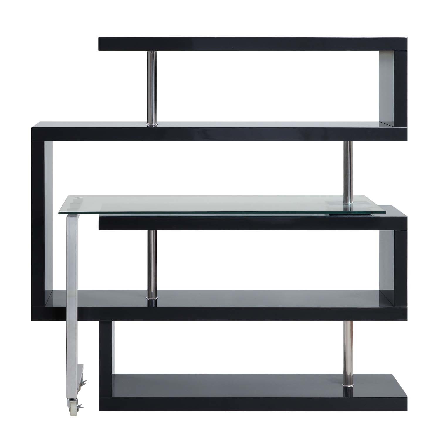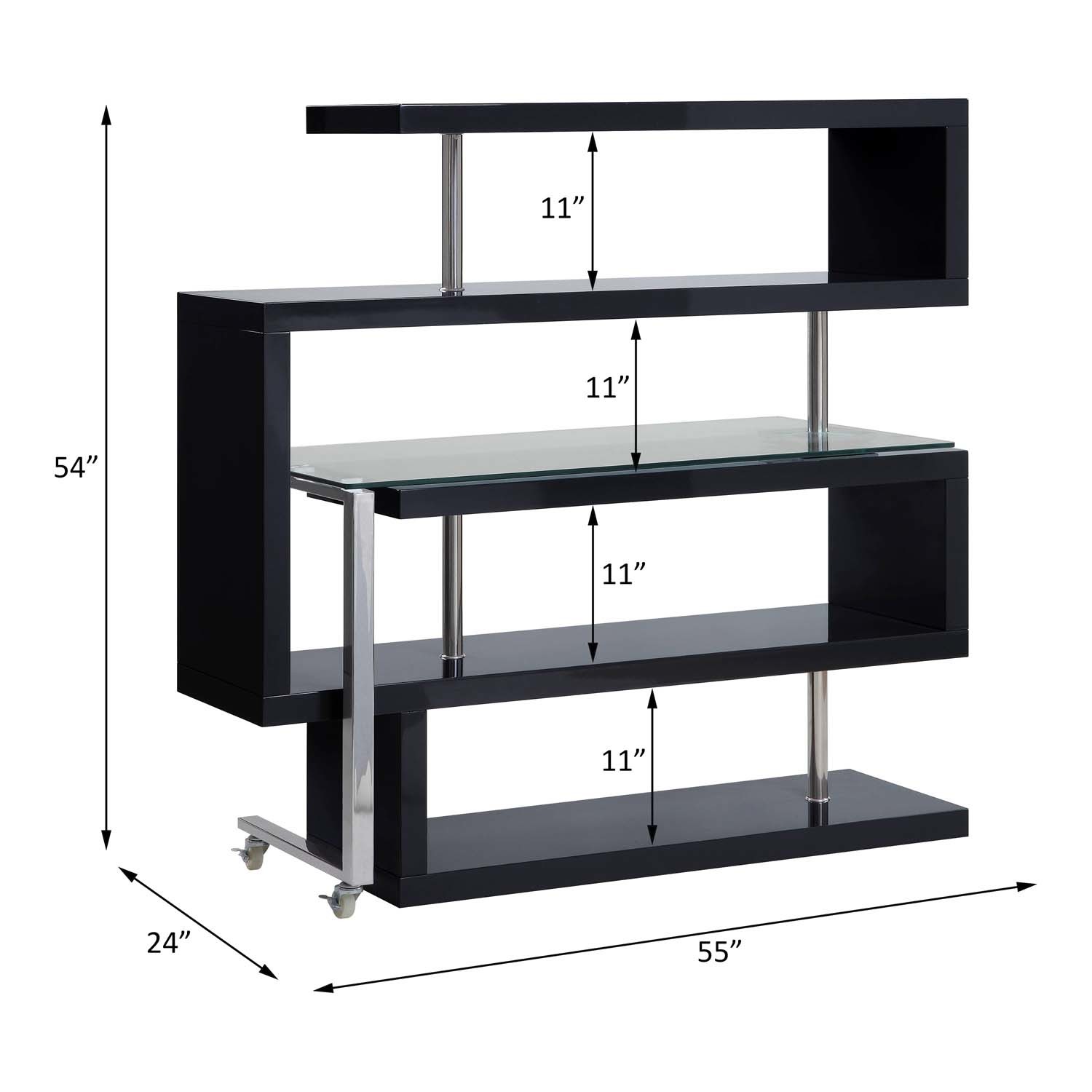 Features: Writing Desk w/Swivel Function Open Storage: 4 Shelves High Gloss Finish Metal Table Base Shelf Thickness: 2", Glass Thickness: 10 mm, Tempered Glass Set Includes: One (1) Writing Desk