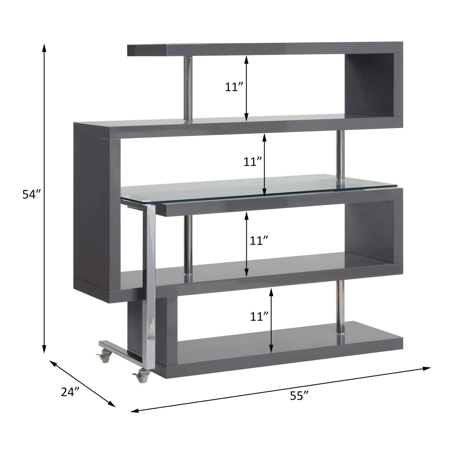 Clear Glass, Chrome & Gray High Gloss Finish |