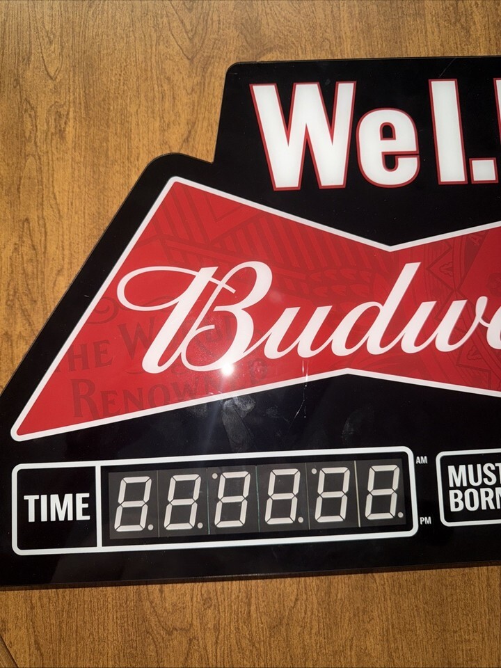 - BUDWEISER BOWTIE WE I.D. COUNTDOWN LIGHTED LED SIGN MAN CAVE BAR DORM ROOM BEER