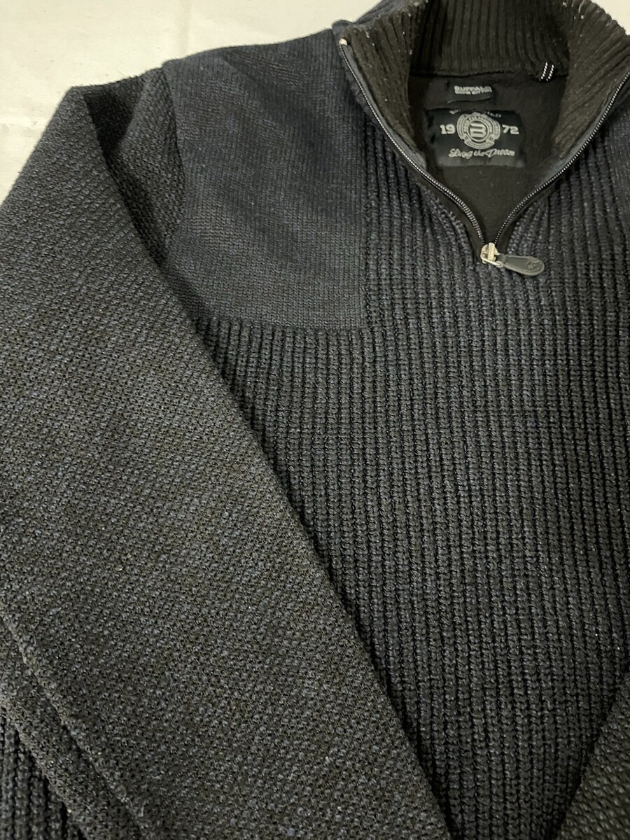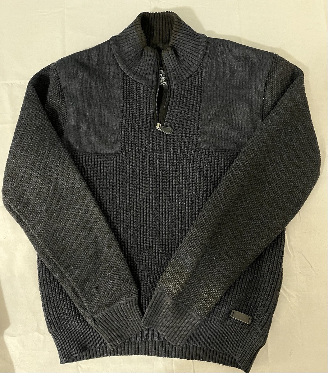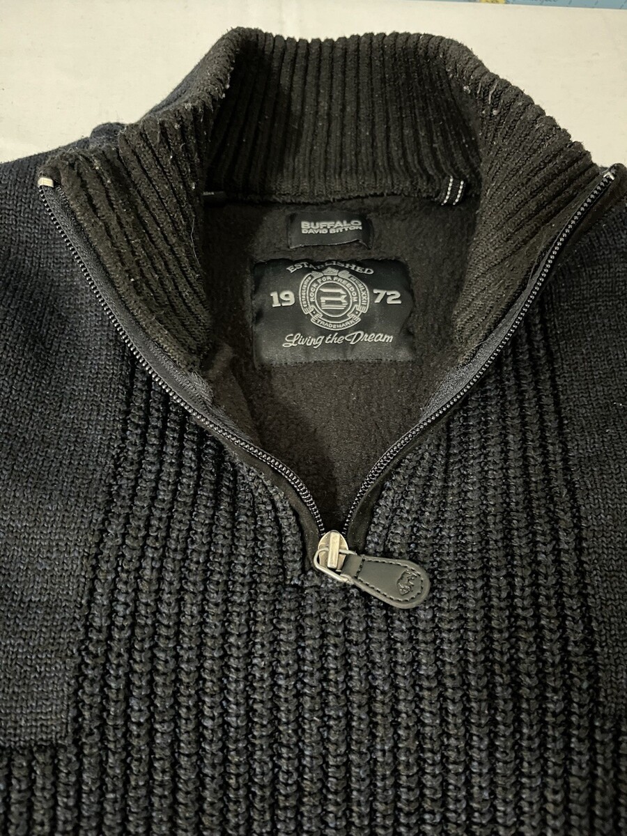 - Buffalo David Bitton Men Fleece Lined 1/4 Zip Knit Sweater Dark Blue Size Medium