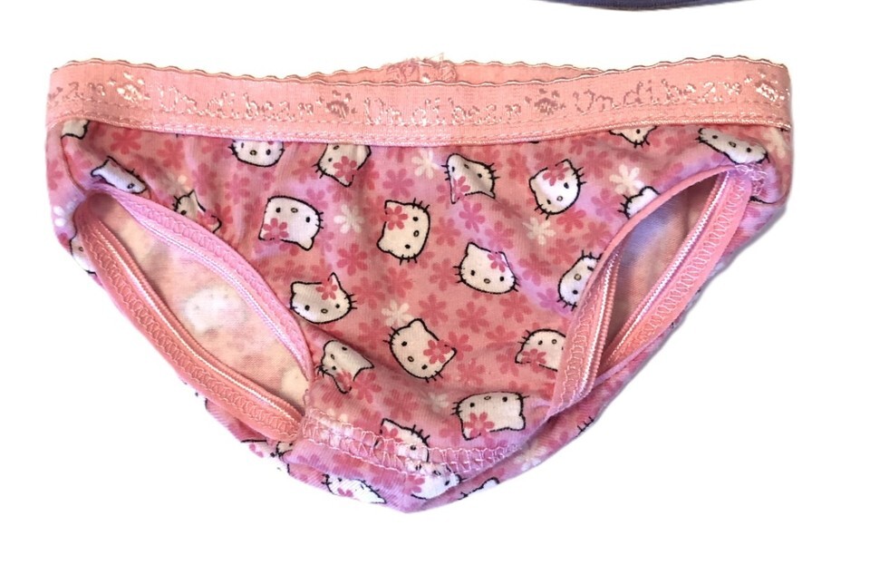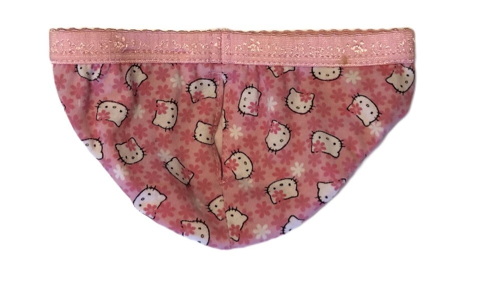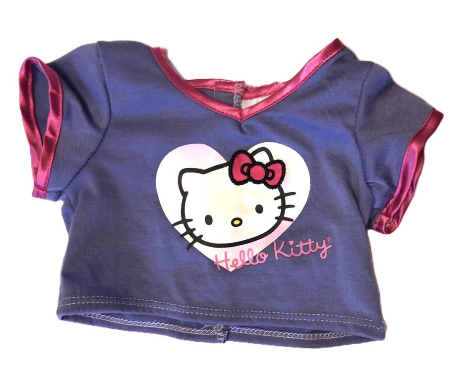 Build A Bear BAB Purple Hello Kitty T-Shirt and Pink Hello Kitty Underwear. The shirt does have a small hole in the back, see picture 3, otherwise the outfit is in good, clean, pre-owned condition. I do have more items listed and offer combined shipping