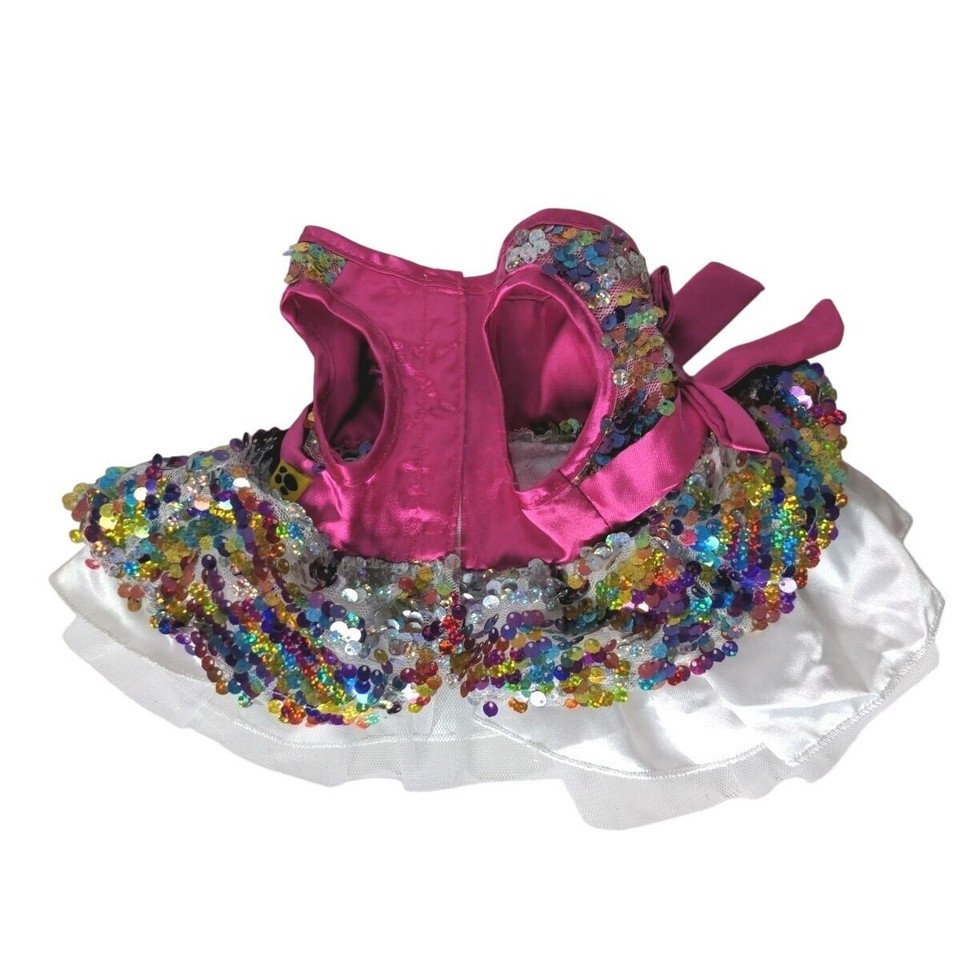 - Build A Bear Sequin Dress Multicolor Sparkly Ruffle Pink Bow Outfit BAB