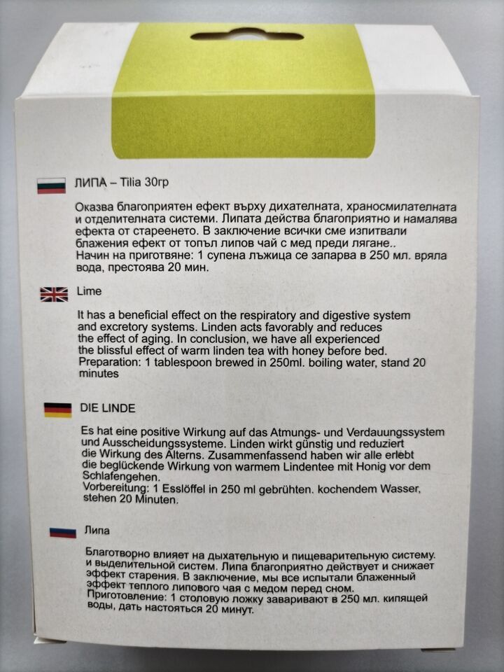Enjoy the aromatic and delightful taste of Bulgarian Linden Blossom Tea, made from the delicate blossoms of the Tilia tree. This traditional herbal tea reflects the rich cultural heritage of Bulgaria. ??