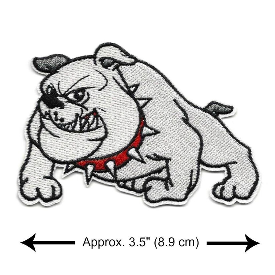 - BULLDOG IRON ON PATCH 3.5" Cartoon Smiling Dog White Embroidered Applique NEW