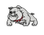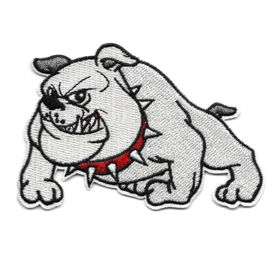 BULLDOG IRON ON PATCH 3.5" Cartoon Smiling Dog White Embroidered Applique NEW