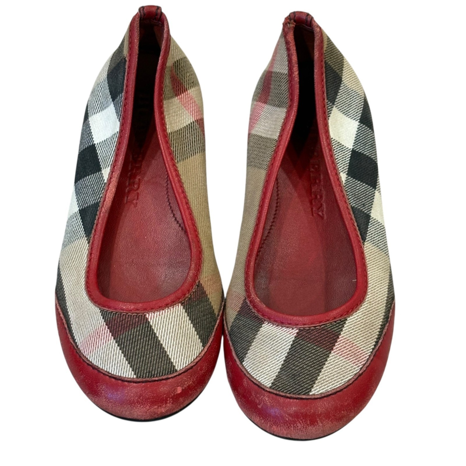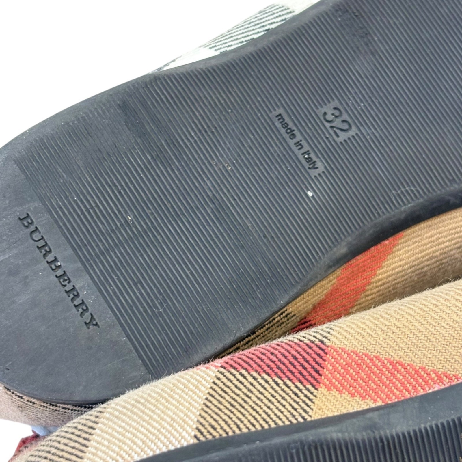 Burberry Girls Ballerina Kids Checkered Canvas & Leather Flats Size 1-1.5 (32)