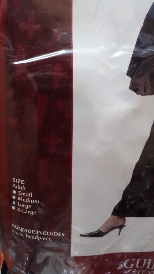 NOTE: Listing is for items listed as included only. Some accessories may be pictured but are not included. All are new in package. Costumes may have some wrinkles or creases from being folded or in package, please see care instructions before trying to iron, etc. A quick and easy way to help eliminate wrinkles is by using a spray bottle form of fabric wrinkle releaser (not included). New in package items may have long / loose threads or strings that may require trimming, these are not considered defects. For Costumes, please refer to chart in this listing as reference for estimating size, always choose a size larger if borderline. Individual results will vary. Please note everyone's body is made different and costumes may not fit as they fit the models in the photos. If you are unsure of the size you need or if your in between sizes, please choose the larger size. These are costumes and should fit comfortably. All sizing information is provided by manufacturer in U.S. sizes. International buyers please know size conversions for your country. International buyers purchase sized items at their own risk. Some Features, Packaging, Colors and Texture may vary slightly. Manufacturer may change some Features, Packaging, Colors and Textures so actual costume may vary slightly from picture. Any known differences will be stated in description. Manufacturer's Photo and Actual Photos - Alternate Views. No Returns or Exchanges on Costumes. As is New in Package. Exact colors cannot be guaranteed. Monitors and screens display colors differently, please keep this in mind. I have no way of knowing what you are seeing. Ships in a polymailer. Hanger will be removed for shipping purposes.