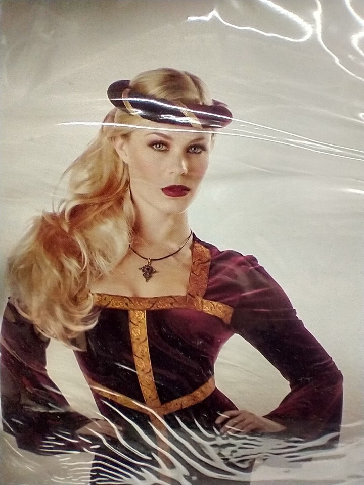 Adult Burgundy Guinevere Costume. Adult - Size: Large. Burgundy (like crushed velveteen or velour. Circlet headpiece. Long flared sleeves. DOES NOT