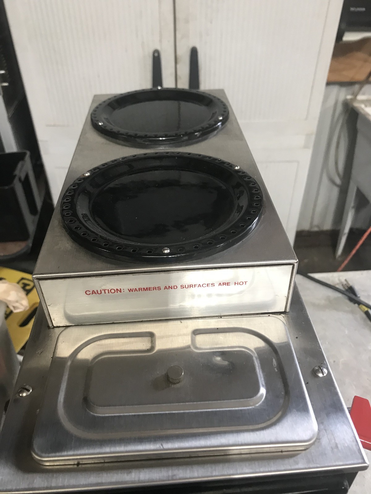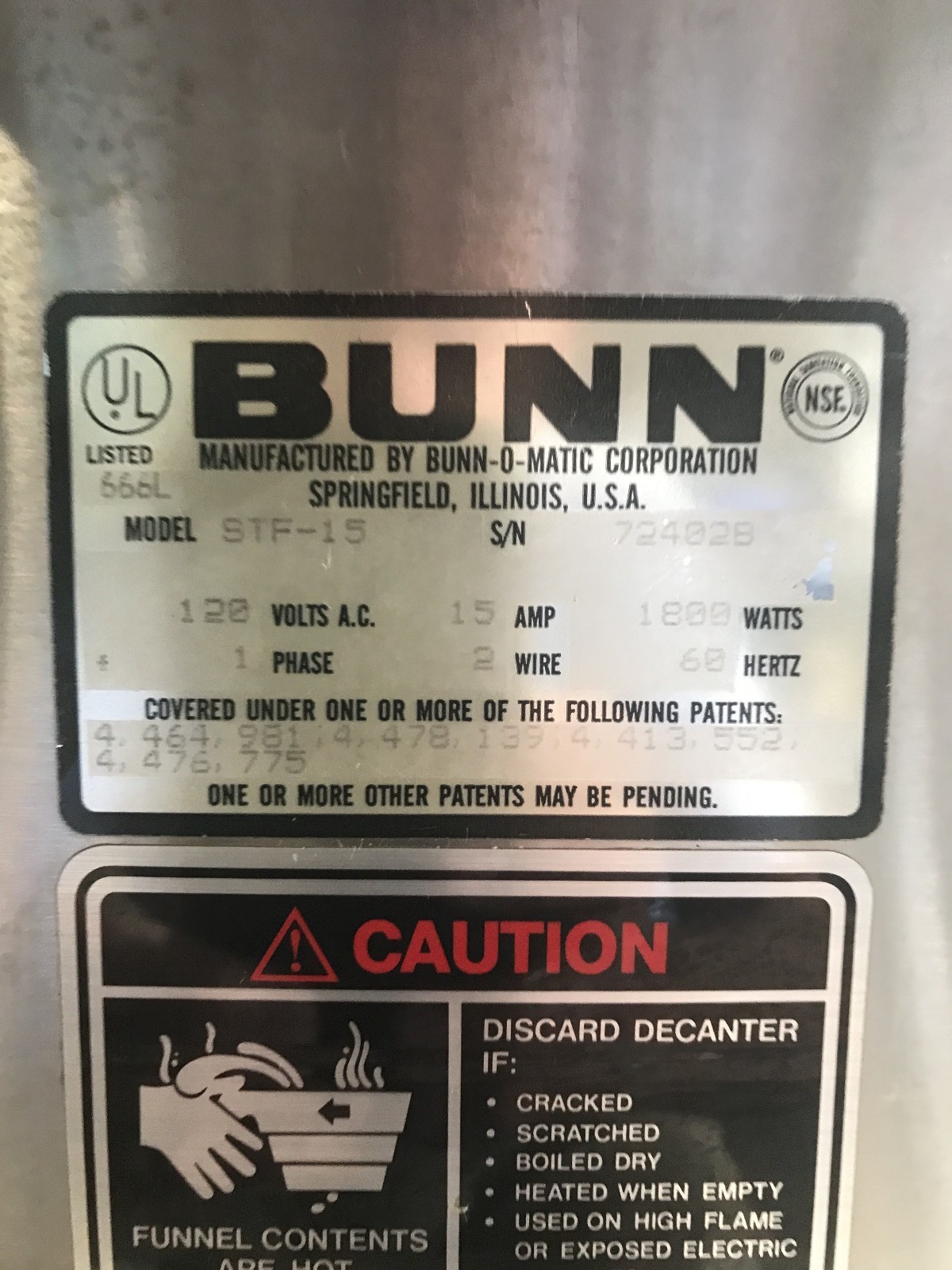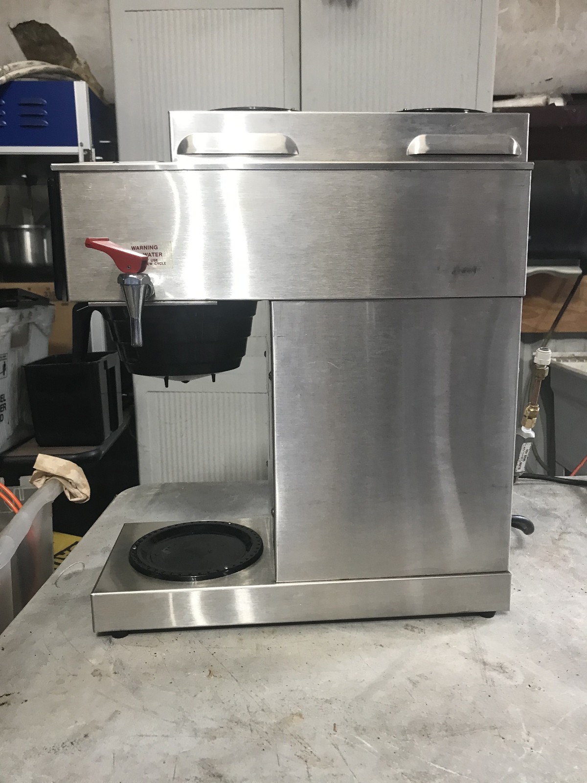 Bunn STF-15 coffee brewer. This brewer is designed to be a water line hook up automatic brewer It has three warming plates and a hot water tap. It shows some cosmetic wear but has been fully tested and is in perfect working condition. Overall condition is very good.
