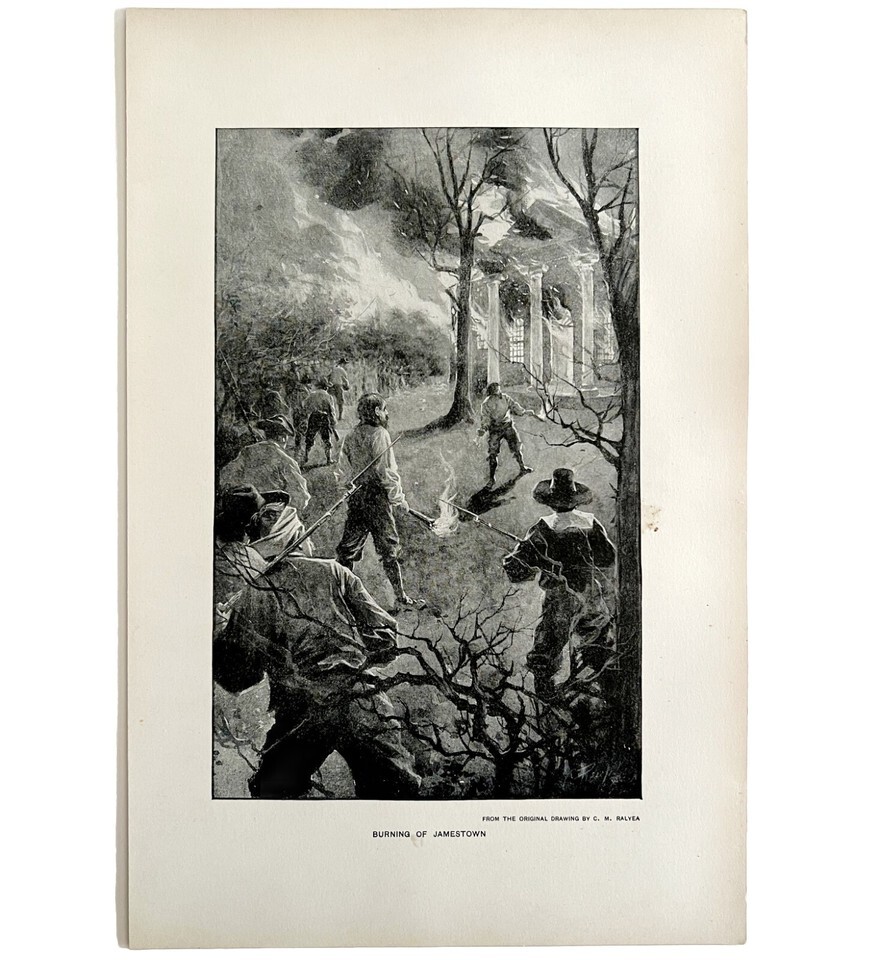 - Burning Of Jamestown 1899 Victorian American History Art Antique Ephemera DWZ2