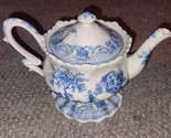 - Burton & Burton Blue Fish Toile Teapot Tea Pot Ceramic Homestead Scene Country