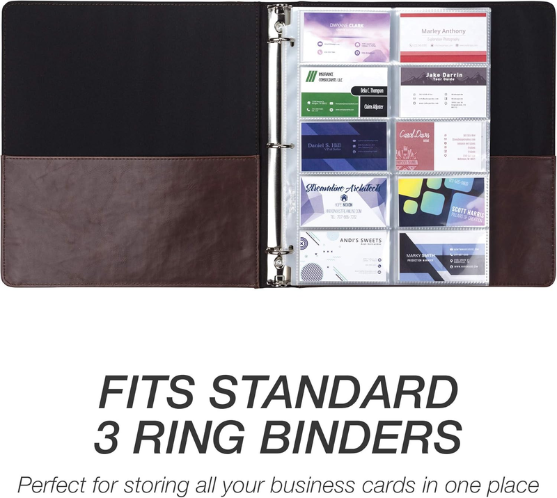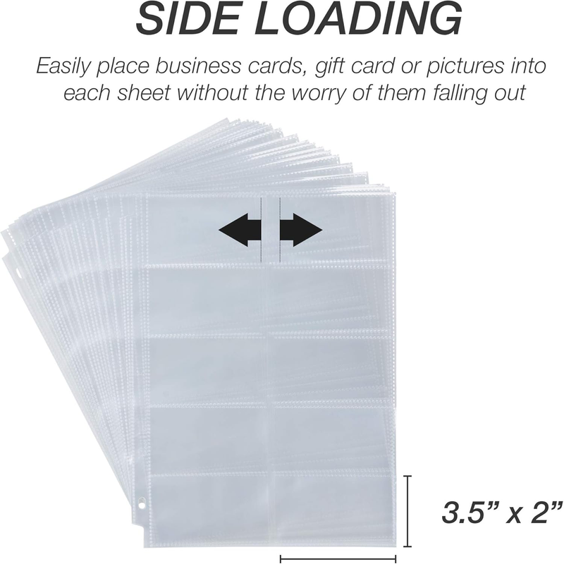 Business Card Sleeves, 25 Pack Holds 500 Business Cards, 3.5 X 2 Inch, 20 per Page, Archival Safe, 3 Hold Punched, Fits 8.5 X 11 Inch Ring Binder