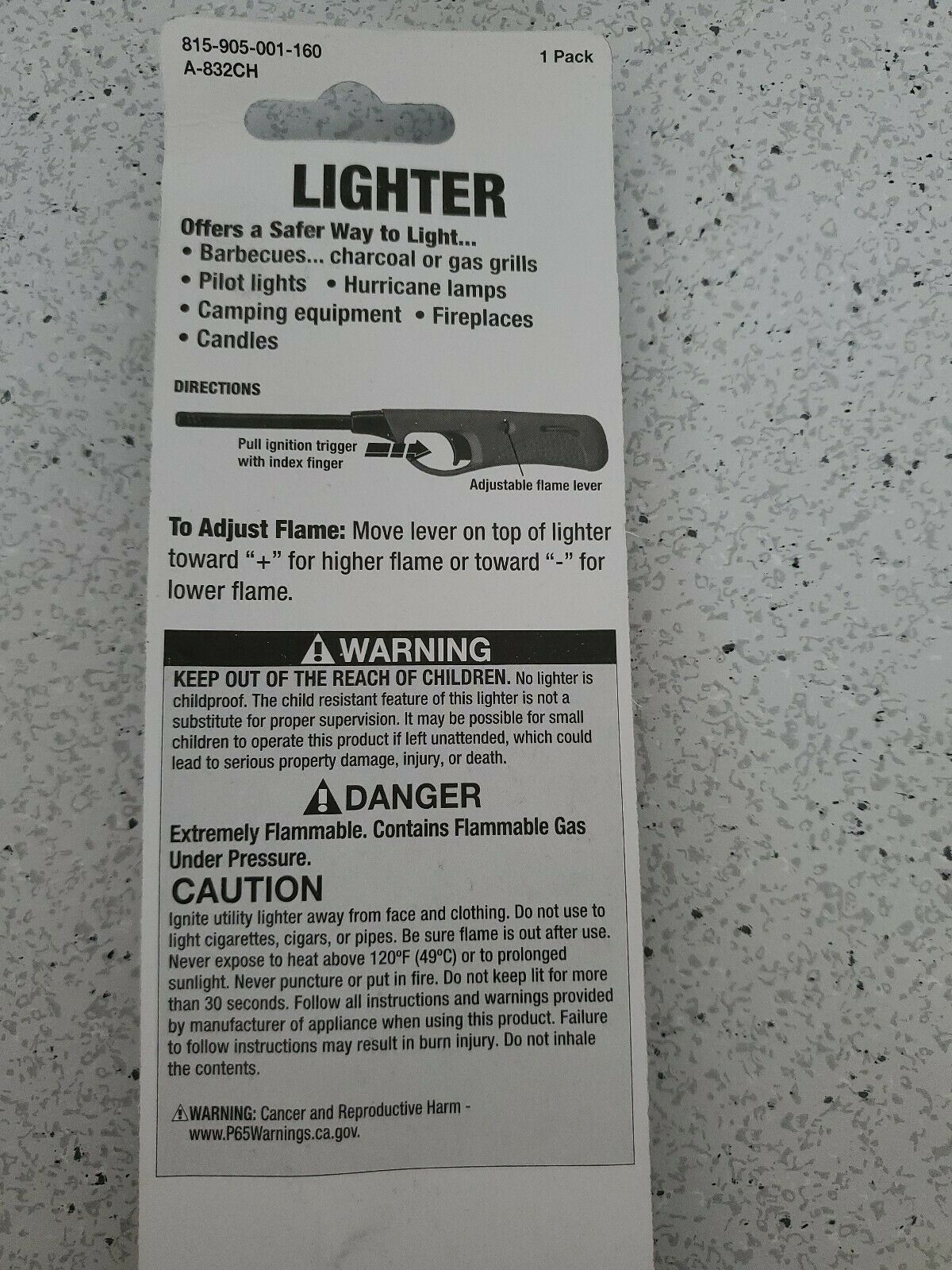 - Butane Candle/BBQ/Fireplace Lighter, Adjustable Flame-10½" Long Reach