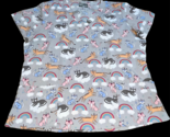 - Butter Soft Sz Large Gray Cat Unicorn Catacorn Rainbow Scrub Shirt Top Nurse Vet