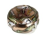The exterior and removable lid are bronze plated and decorated with hand painted accents.