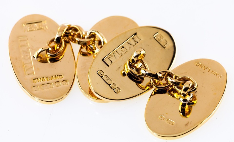 - Bvlgari 18k Yellow Gold Vintage Cuff Links 5.70 grams 3/4" x 7/16"
