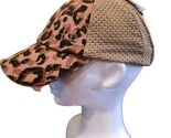 C.C. Dusty Rose Leopard Print Distressed Vintage Pony Cap with Knit Mesh Back
