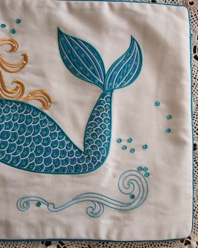 C&F ~ "Mermaid Love" ~ 14" x 24" ~ Polyester ~ Embroidered & Sequin Pillow Cover