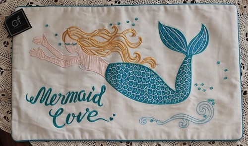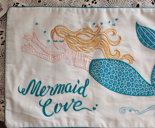- C&F ~ "Mermaid Love" ~ 14" x 24" ~ Polyester ~ Embroidered & Sequin Pillow Cover