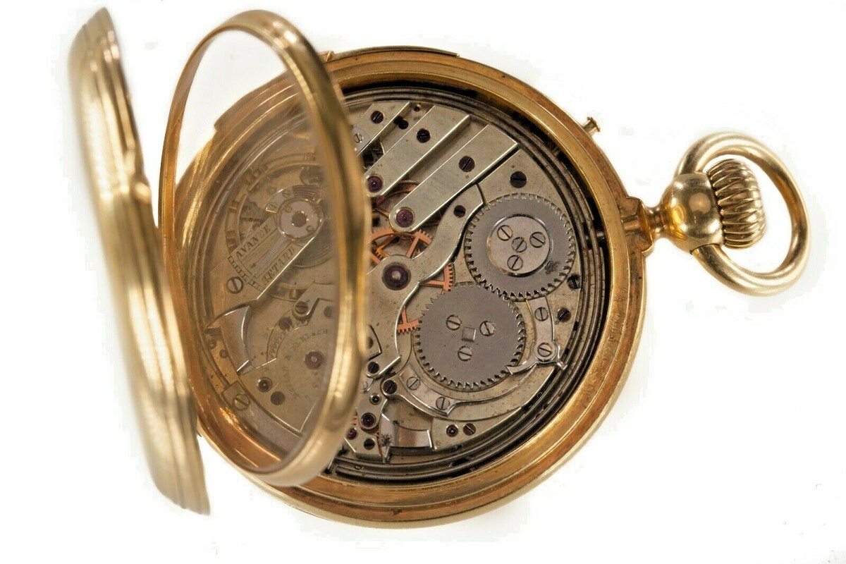 Rare montre de poche CH Meylan Fleischmann en or jaune 18 carats a repetition minutes Double Hunter