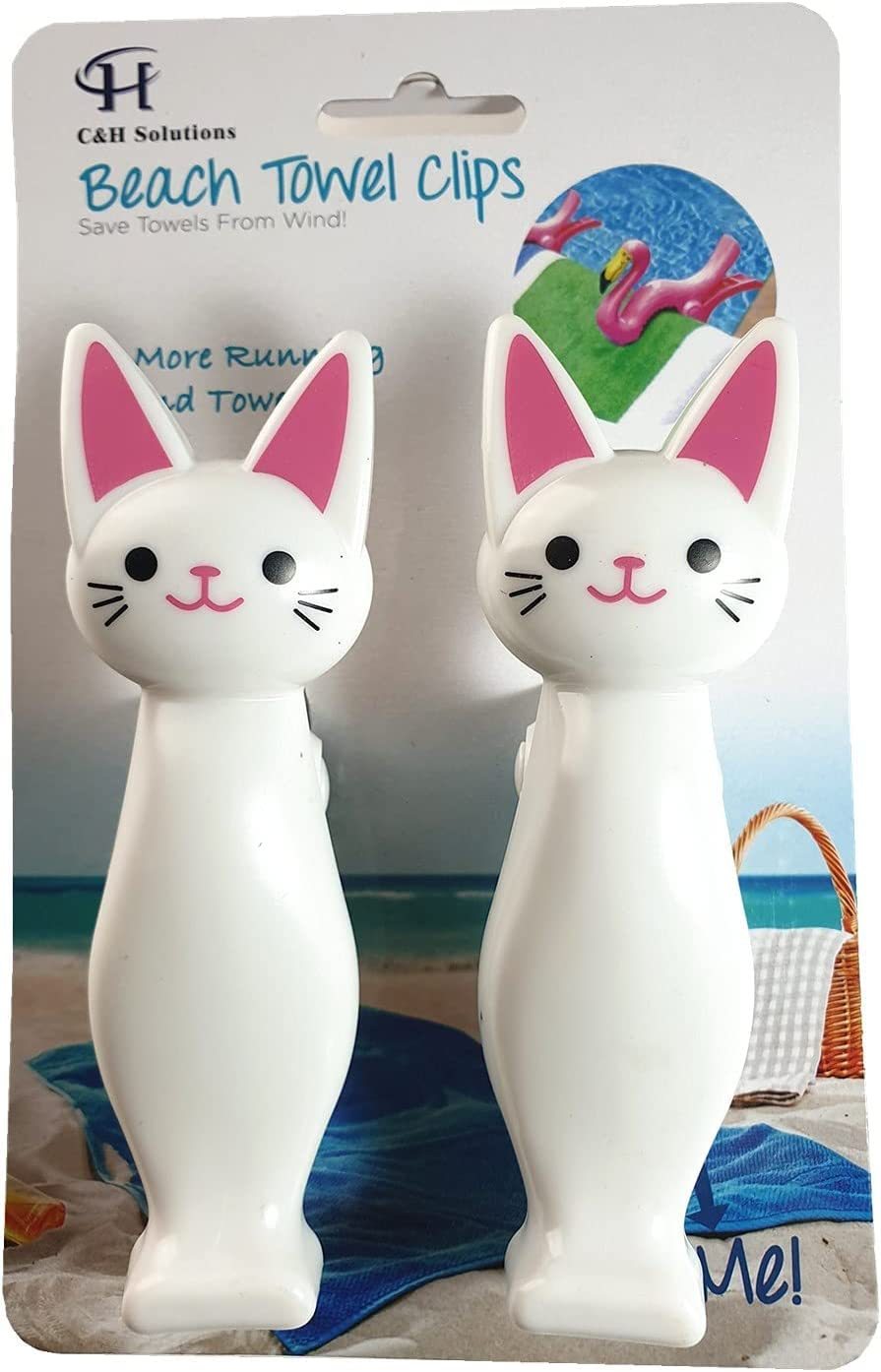 C&H Solutions 3 Set (6 Ct) White Cat Style Beach Towel Clips Jumbo Size for Beac