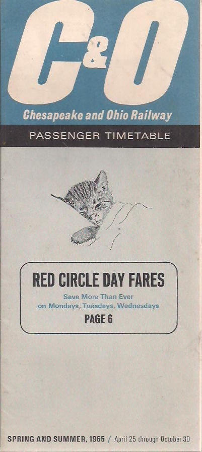 - C&O Chesapeake & Ohio Railway Passenger Timetable Red Circle Fare April 25, 1965