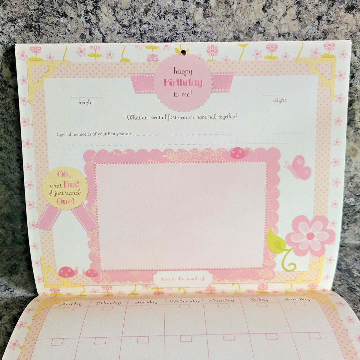This Anna Griffin Baby?s First Year Calendar by C.R. Gibson features a soft pink floral and bird design with polka dot accents and a yellow floral border. It includes 60 milestone stickers to help parents document key moments in their baby?s first year.