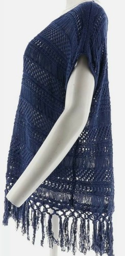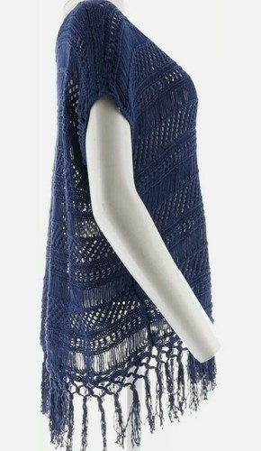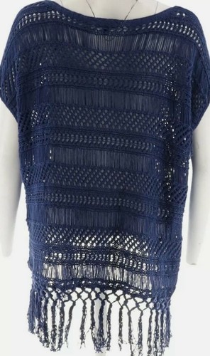 C. Wonder Brand ~ Women's Size Medium ~ Crocheted Top With Tassels ~ Navy Blue