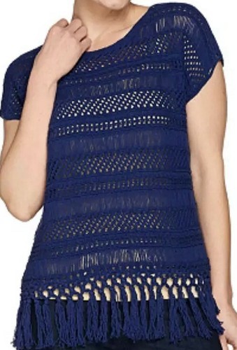 - C. Wonder Brand ~ Women's Size Medium ~ Crocheted Top With Tassels ~ Navy Blue